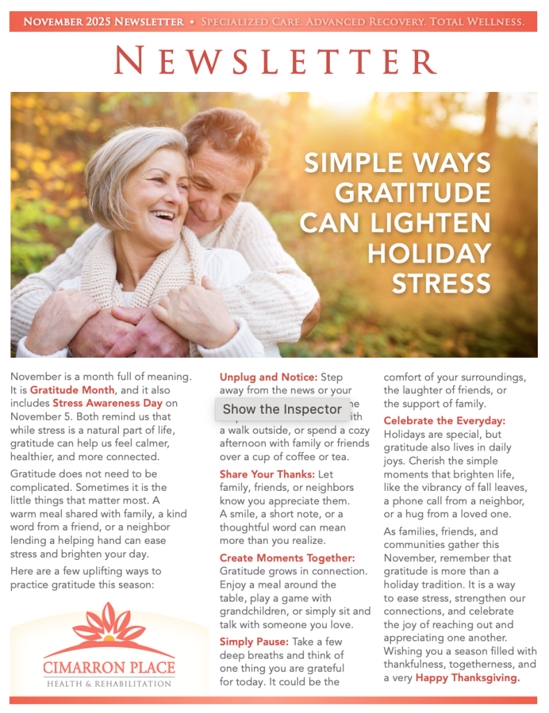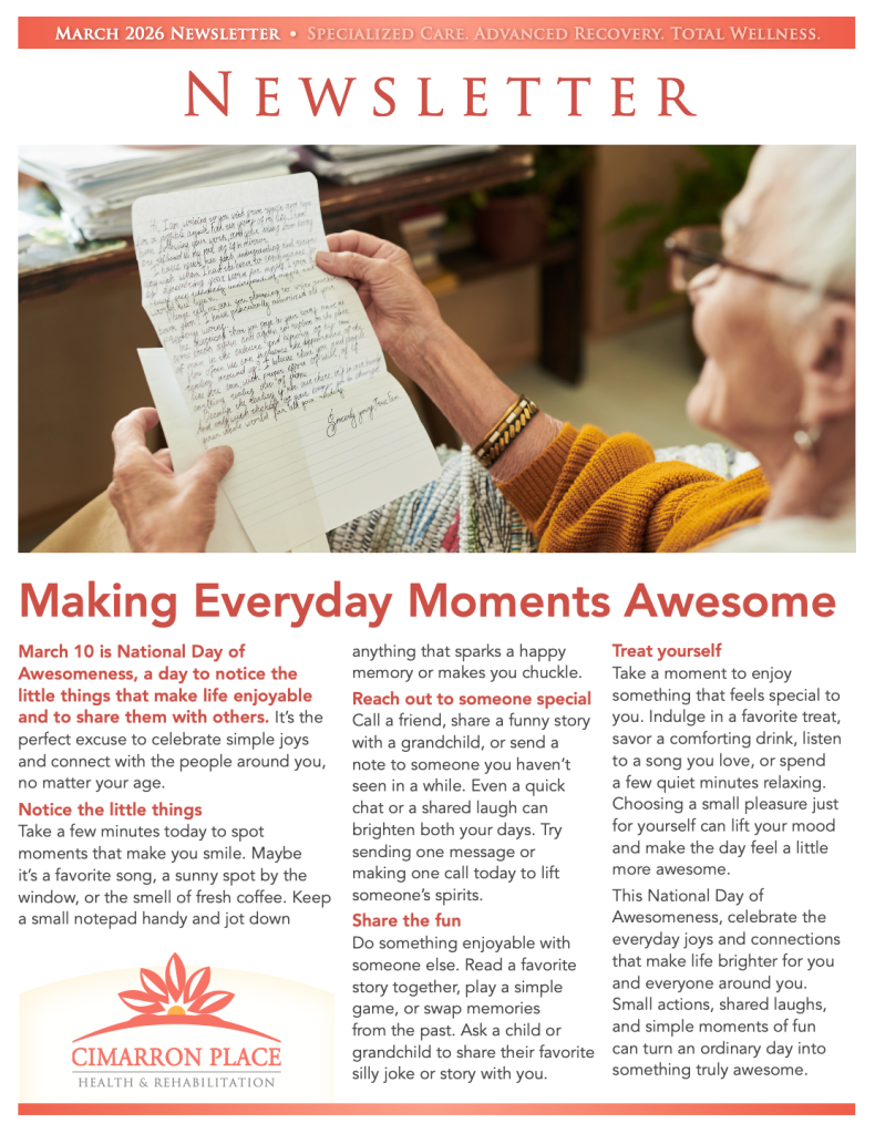 See the latest news and happenings at Cimarron Place Health & Rehabilitation.